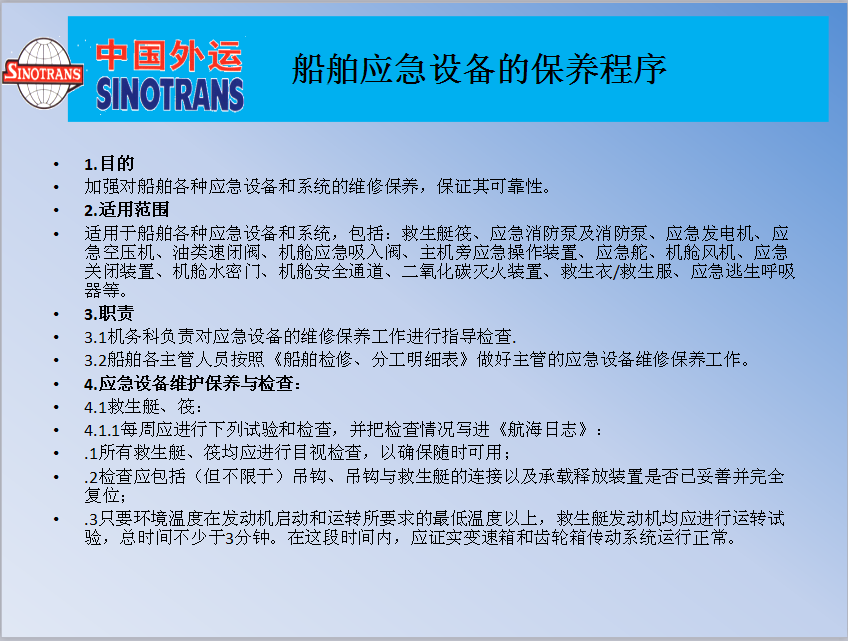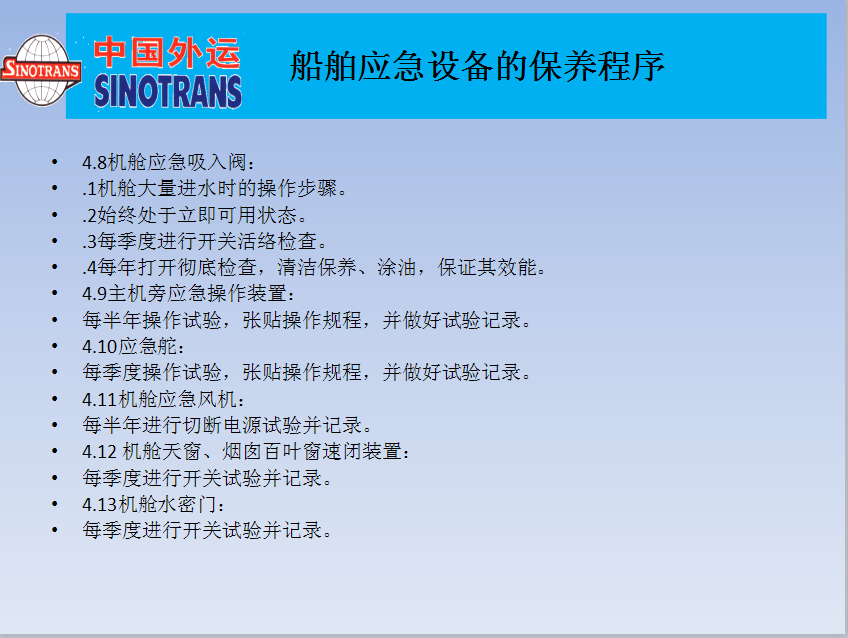 船舶應急設備的保養(yǎng)程序
